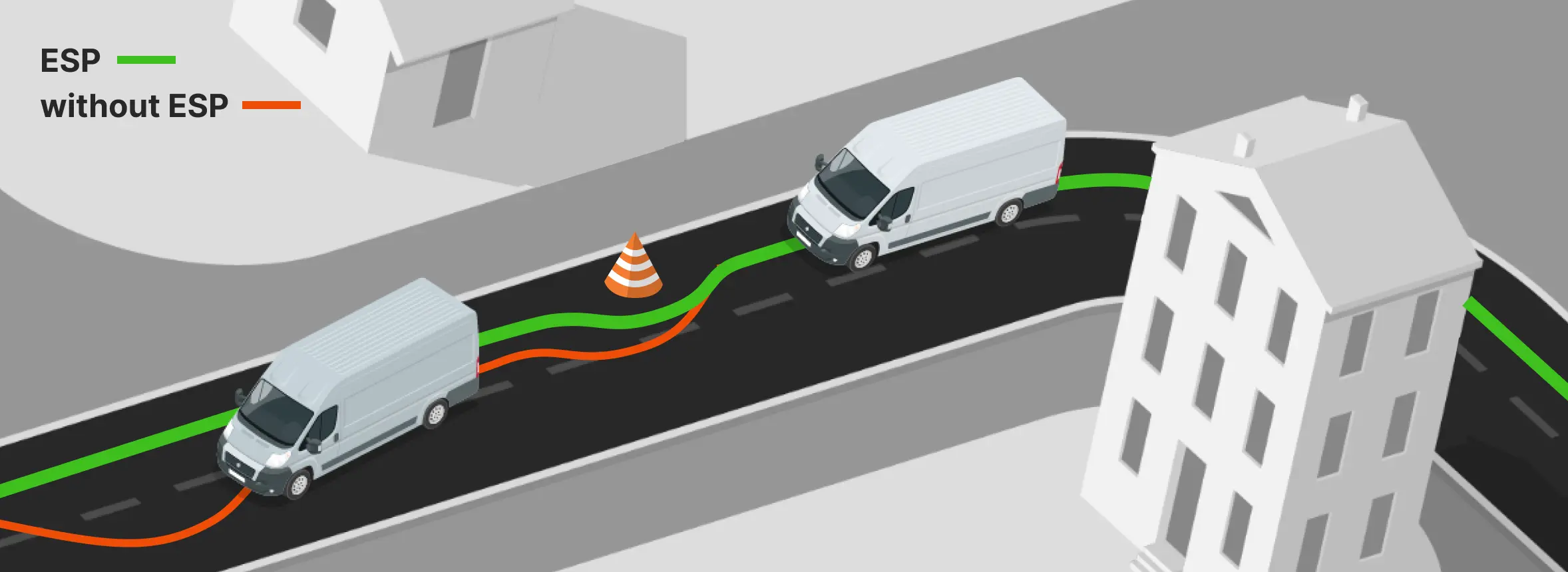 Предупреждает боковой занос, а также помогает сохранить траекторию движения и стабилизировать положение автомобиля во время выполнения манёвров на высокой скорости при низком коэффициенте сцепления колёс с дорожным полотном.